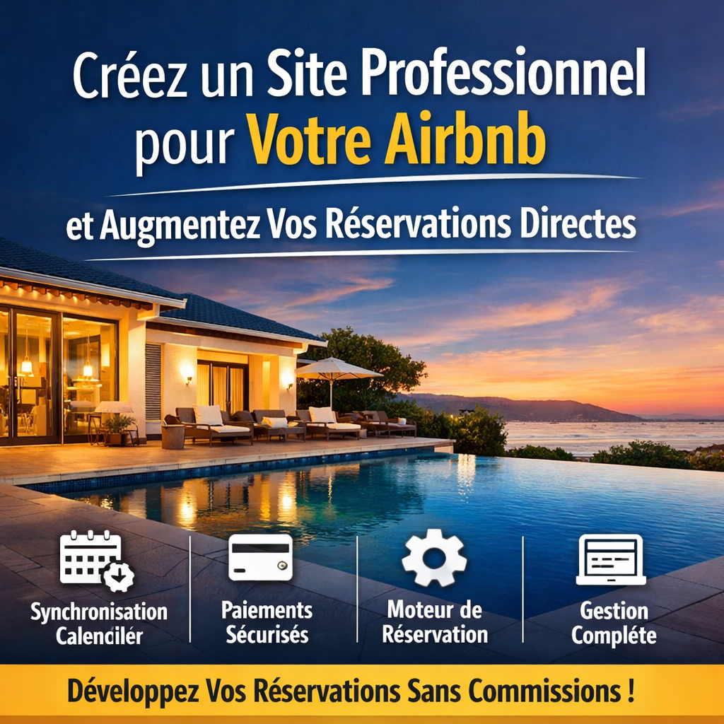 Les locations courte durée connaissent une croissance exceptionnelle à travers le monde. Disposer d’un site web personnalisé pour votre annonce Airbnb est aujourd’hui essentiel afin d’augmenter vos réservations directes et d’attirer des voyageurs qualifiés.