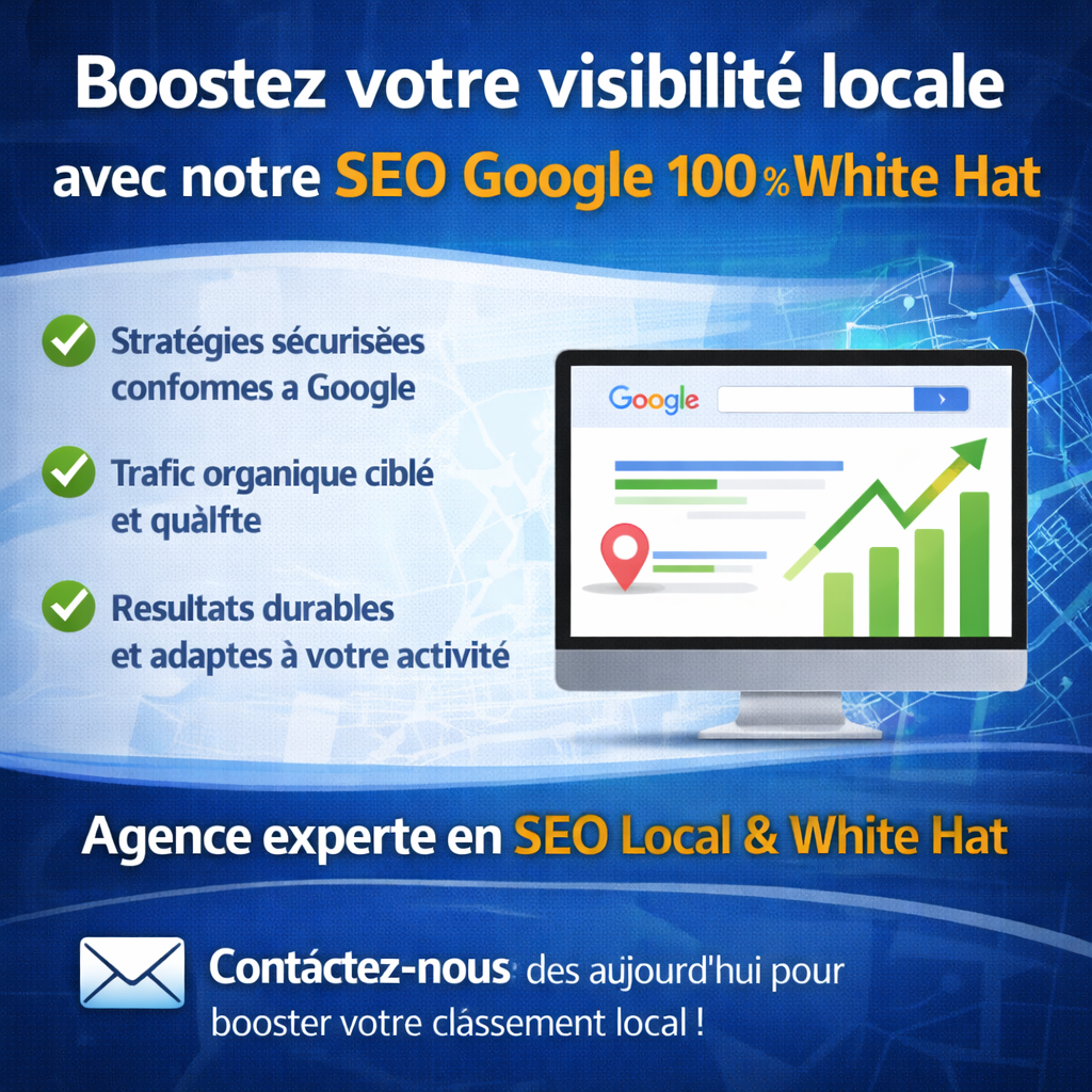 Notre service de SEO Local Google 100 % White Hat est spécialement conçu pour améliorer votre positionnement local et vous offrir un avantage concurrentiel durable sur votre marché.