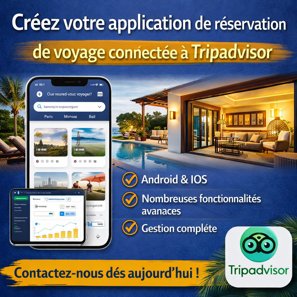 Nous accompagnons les professionnels du tourisme dans la conception et le développement d’applications mobiles puissantes, dédiées à la planification et à la réservation de voyages, tout en exploitant pleinement l’écosystème Tripadvisor.