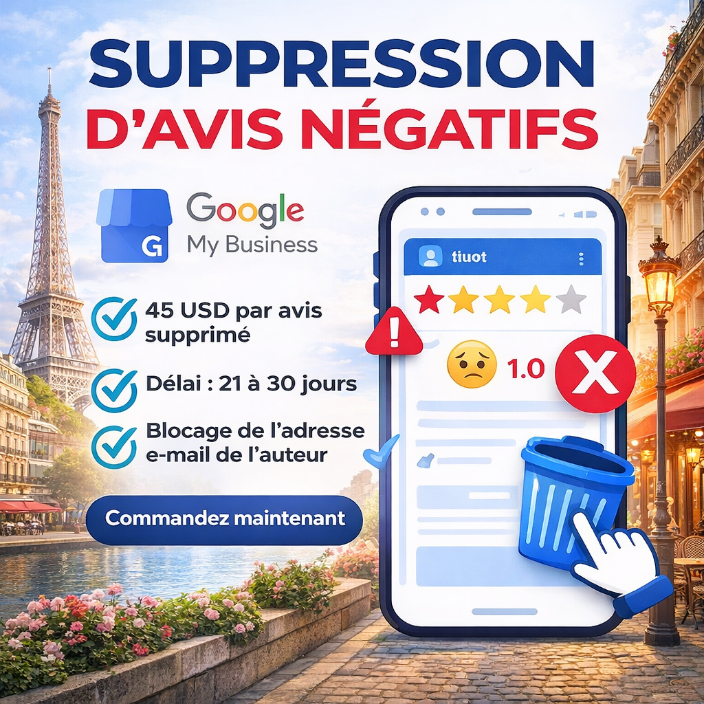 - Suppression des avis négatifs sur votre fiche Google My Business